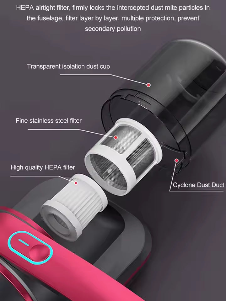 Esta innovadora aspiradora está diseñada para eliminar hasta el 99.99% de ácaros, bacterias y polvo en colchones, almohadas, sofás y más. Su combinación de potente succión + luz UV avanzada garantiza una limpieza profunda y segura en las superficies donde los ácaros se esconden.